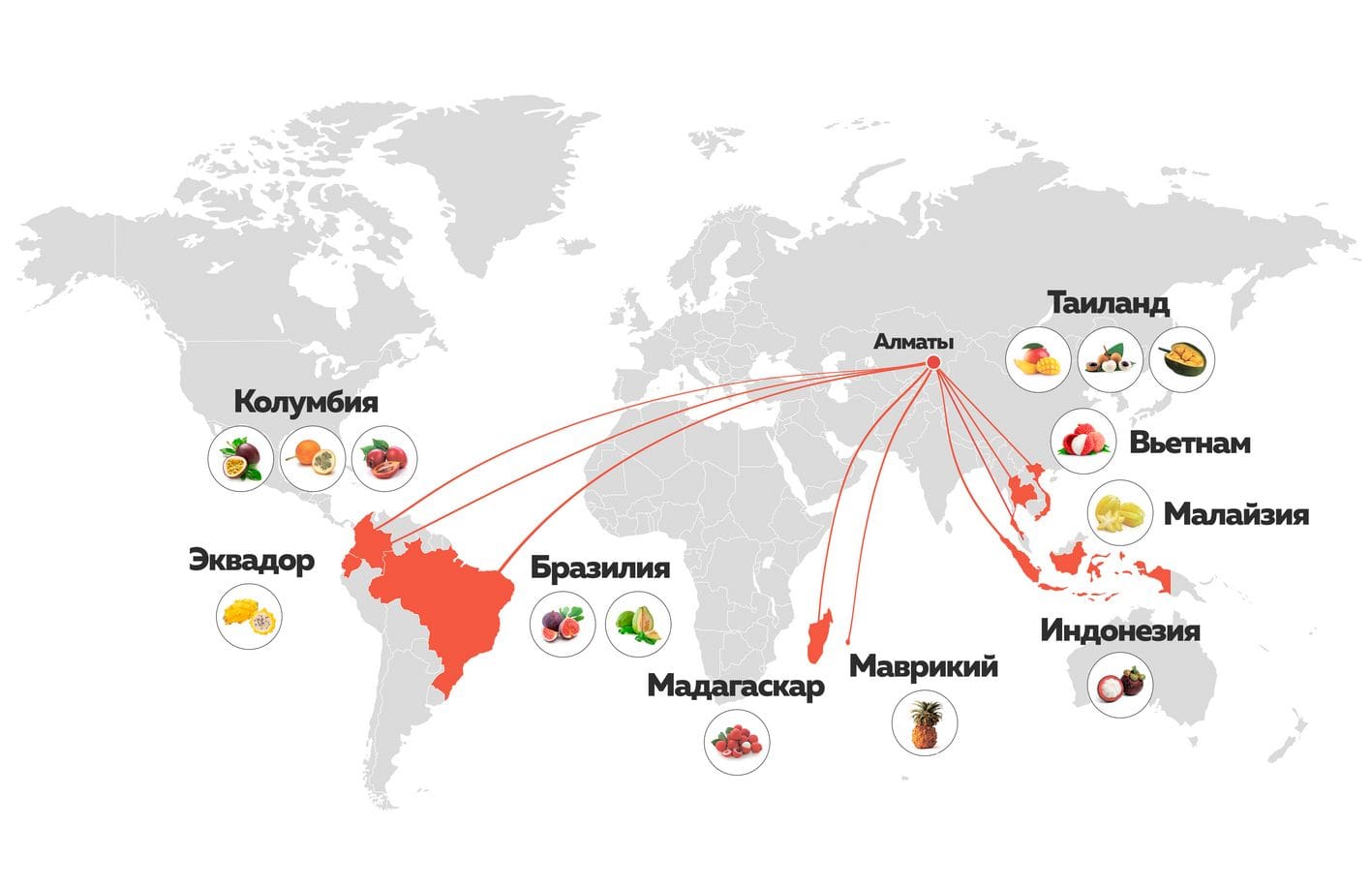 Каждый фрукт привозим с тех стран где они растут естественно.